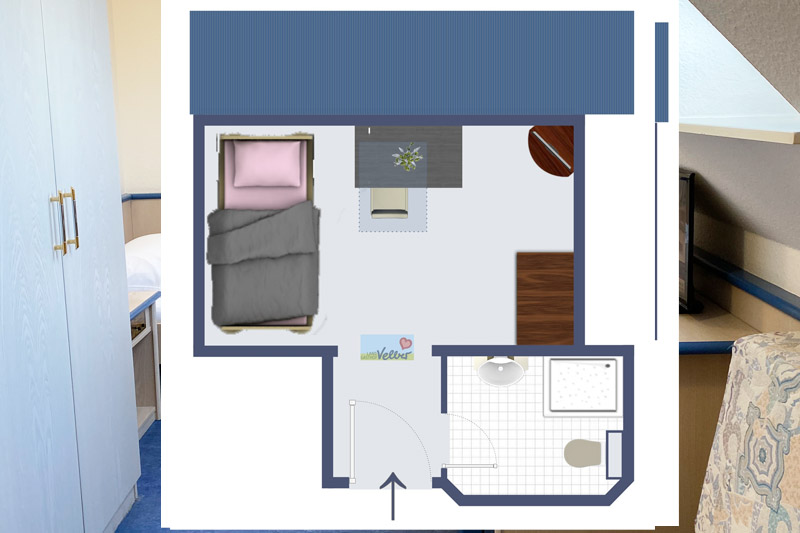 Unsere Standard Einzelzimmer finden Sie in der zweiten Etage unseres Hauses. Sie sind ausgestattet mit einem Bett ca 90x200cm. Alle Einzelzimmer verfügen über WC/Waschbecken/Dusche, sowie sorgen gratis Wlan und ein Smart-LED-TV in jedem Zimmer für ein Plus an Entertainment, während mehrere Desinfektionsstationen im Haus verteilt, sowie diverse Hygieneprodukte im Zimmer ein Höchstmaß an Sicherheit garantieren. Bettwäsche und Handtücher sind bei uns selbstverständlich inklusive und für eine kleine Mahlzeit zwischendurch stehen der Wasserkocher im Zimmer, sowie ein gut gefüllter Kühlschrank mit Getränken und Snacks im Flur bereit.